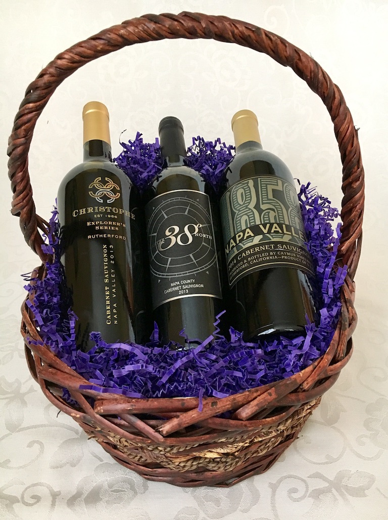 One bottle 2014 1858 Cabernet Sauvignon, 2013 Christophe Cabernet Sauvignon Rutherford and 2013 Center 38 North Cabernet Sauvigon.